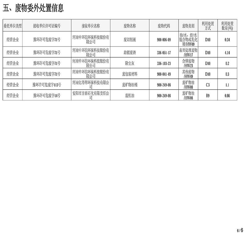 河南匯豐管業(yè)有限公司危險(xiǎn)廢物產(chǎn)