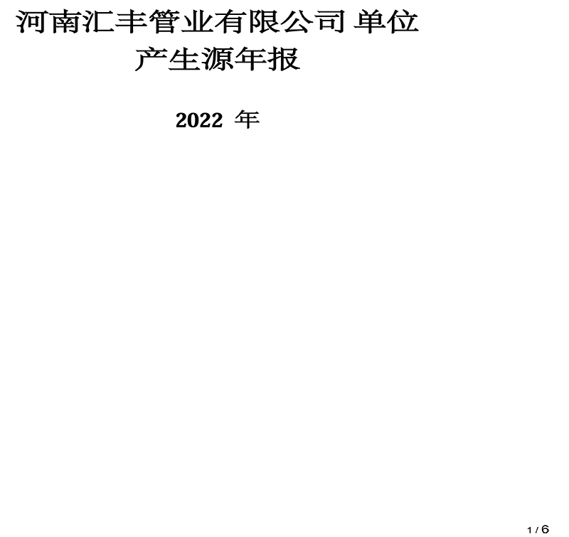 河南匯豐管業(yè)有限公司單位產(chǎn)生源年報(bào)(2022年)